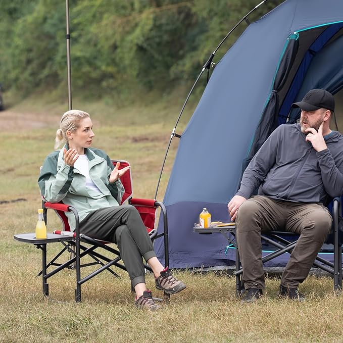 TIMBER RIDGE Aluminum Oversized Camping Chair, Lightweight Portable Directors Chair with Side Table Detachable Side Pocket for Outdoor Camping, Lawn, Picnic, Support 400lbs Red