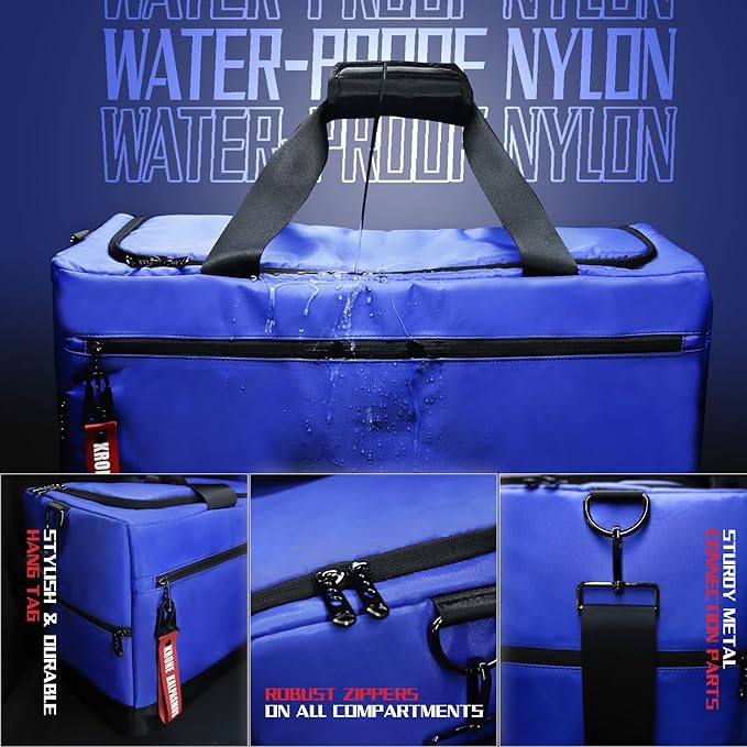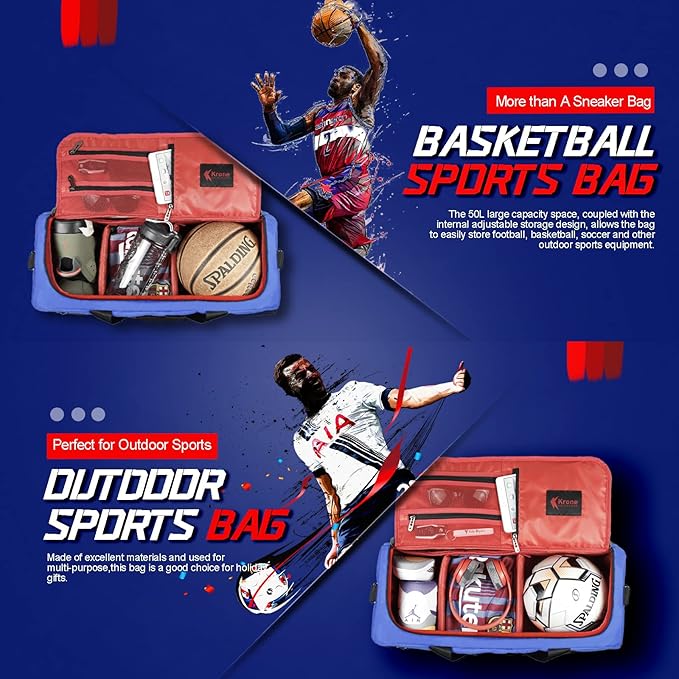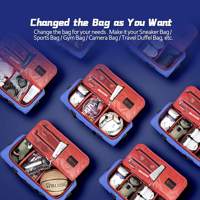 • WIDE USAGE: This fashion travel duffle bag is not only used as a shoe suitcase for travel. Adjusting the 3 dividers inside, the bag can be customized to fit any storage needs. It is perfect for traveling, outdoor activities, baseball, football, basketball, and clothing storage. This large travel duffle bag can be transformed into a Sneaker Bag / Travel Duffel Bag / Gym Bag / Sports Bag / Boxing Bag / Athletic Bag.