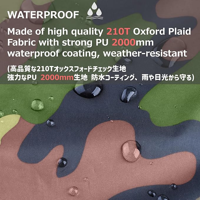 - Waterproof: The waterproof tent tarp is made of 210T Plaid Cloth ripstop PU2000mm. It offers an excellent protection against rain, sudden downpours, snow and high winds
