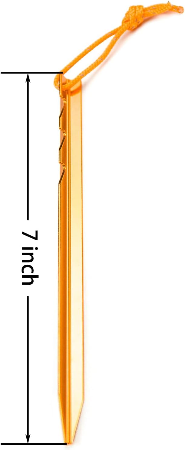 - Lightweight: 7075 aluminum ultra-light three-sided aluminum tent stakes; The Length of the stakes: 7 inch;