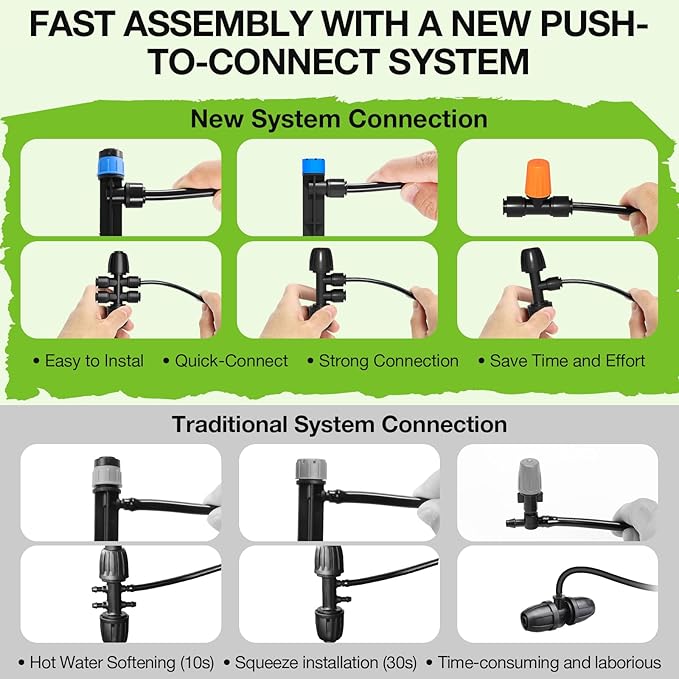 - Automatic irrigation kit is great for atomization, lawn irrigation, patios, roof cooling, agriculture, vegetable, greenhouse, flower bed, swimming pool misting fog cooling irrigation etc.