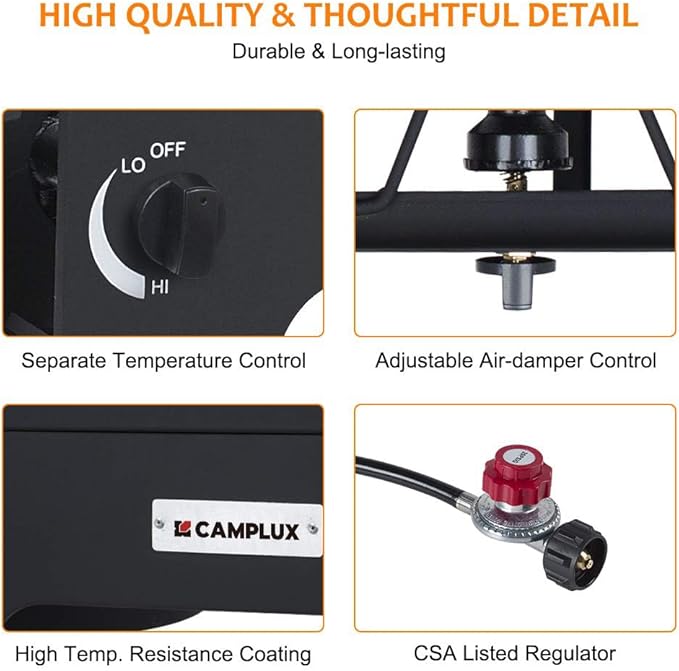 - High Quality - Propane burner stove made of heavy cast iron with weatherproof and high-temperature resistant coating. It can be your long-term companion for outdoor cooking