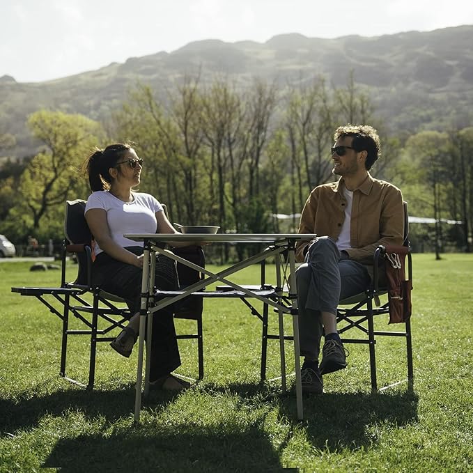 - Convenient Storage: The directors chair with side table and the integrated beverage & phone holders free your hands, and the double front multi-pocket attached on side providing ample storage to store your books, magazines, iPad, keys, wallets, keeping your belongings organized.