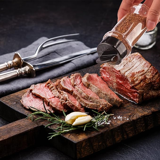 - Materials: Made of food-grade PET plastic, reliable and lightweight, transparent plastic bottles let you have a clear look of spices, not suitable for hot liquid or hot sample and recommend to put into the dishwasher