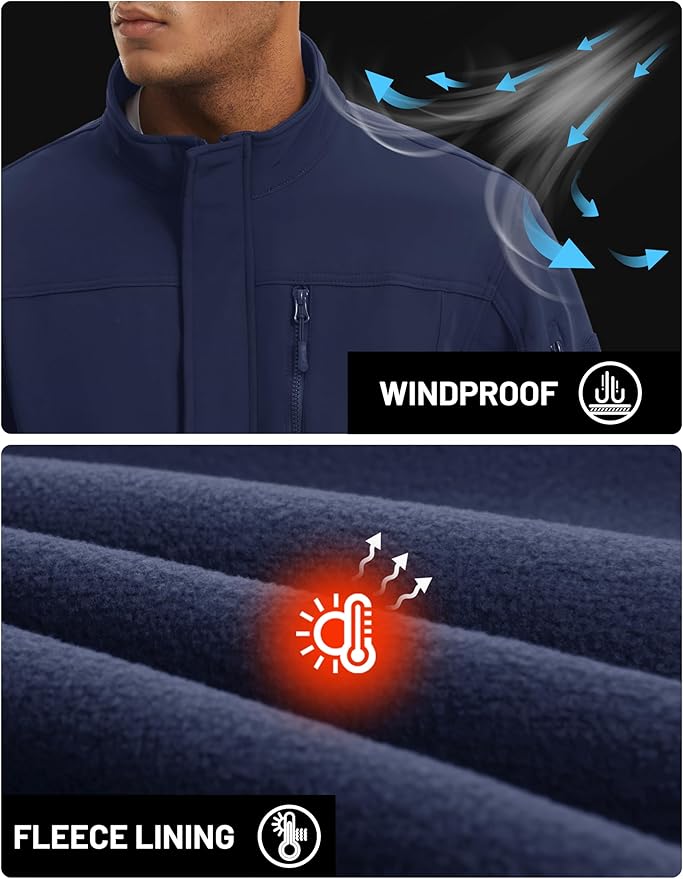 - Fabric:This fleece lined jacket for men is made of 50D high-density composite abrasion resistant fabric with outer soft shell.(Face:90% polyester & 10% spandex,lining:polyester)