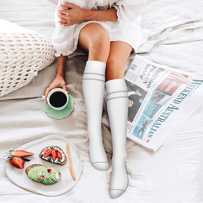 - GIVE LIFE TO YOUR LEGS! - More improve circulation means more Healthier legs and less pain+swelling.Our Graduated Compression Socks put pressure in just the right spots.Provides true graduated compression to support your legs,reduce fatigue,soreness,and prevent injuries at the same time.Progressive compression technology has been recognized by many users Our copper compression socks is self-care staples.Make you feel great-no matter where,no matter when,and no matter what you're up to!