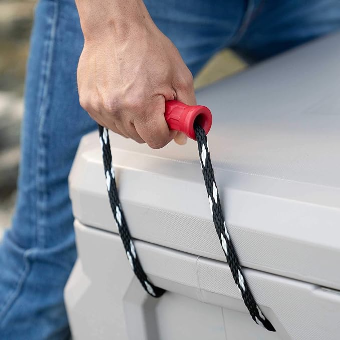 - Materials: hard cooler made of heavy-duty polyethylene, urethane, polypropylene, rope handles