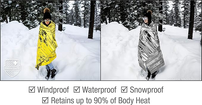 Swiss Safe 10 Pack Mylar Emergency Blankets for Survival - Compact & Insulated for Cold Weather - Designed for NASA, Outdoor, Running, Camping, Survival, First Aid Car Kit - Gold, 10 Pack