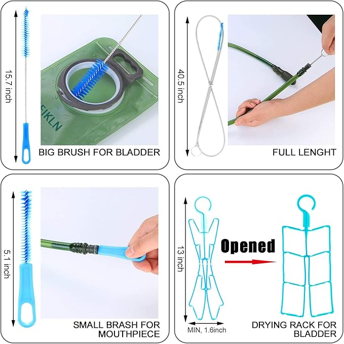 - SATISFIED AFTER-SALES SERVICE:2PC hydration bladders and 4 in 1 CLEANING KITS ,If you are not absolutely happy with your purchase of the hydration bladder for any reason, just let us know and we will offer a satisfactory solution. We take pride in providing an awesome customer support!click "ADD TO CART" now!