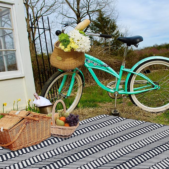 FH Home Outdoor Camping Rug - Waterproof, Fade Resistant, Reversible - Premium Recycled Plastic - Herringbone - Large Patio, Deck, Sunroom, RV - Fresno - Navy - 9 x 12 ft Foldable