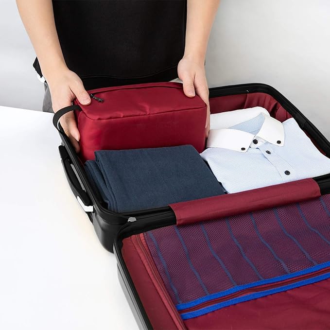 - Quality material: The toiletry travel bag is made of quality polyester material that has no unpleasant smell. The sturdy and wearable polyester material makes the bag itself very well-constructed to keep the shape and protect your toiletries from splashed water