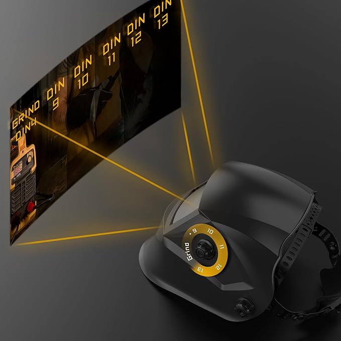 - 1/1/1/1 optical clarity,external grind button allows you to quickly switch between weld(DIN9 -13) and grind mode