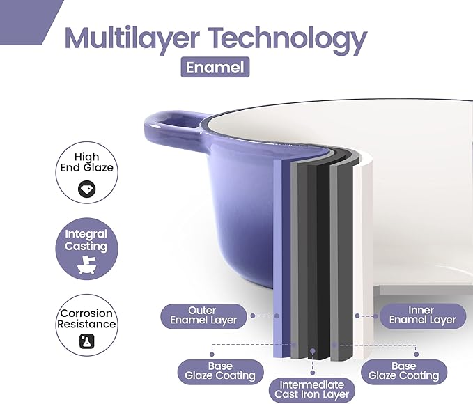 - Suitable for 3-5 people: The 3.5 quart enamel Dutch oven is the choice for cooking food and desserts. Its design makes your food look more delicious