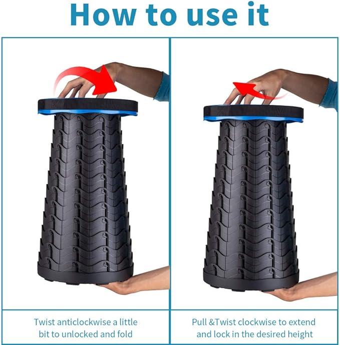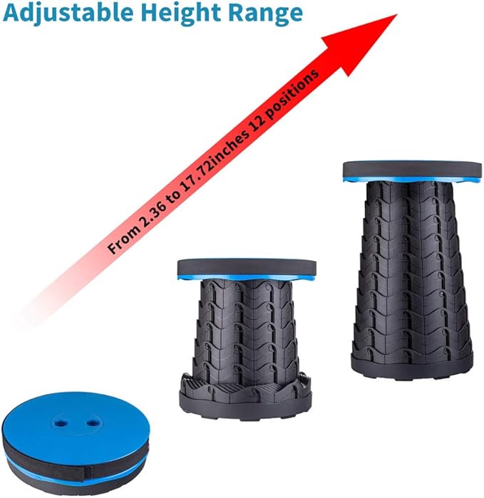- PORTABLE & LIGHTWEIGHT: This telescopic stool is only 2.54 pounds with dimeter 9.84 inches/250mm. The adjustable strap makes the stool easy to carry in your hand or hanging on your shoulder. Perfect to use for camping, fishing, hiking, hunting, picnic, BBQ. Also can be used in living room, bedroom, bathroom etc