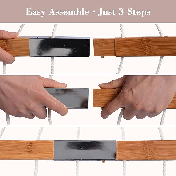 - Curved Strong Spreader Bar: 55 inch spreader bars with marine varnish to seal are stylish and weather resistant. It features countersunk spreader bar holes which reduce the friction between the rope and spreader bar. Thanks to the curved design, it’ll give you a comfy nap without fearing to flop down. And the bar could be knocked down for easy storage and carriage