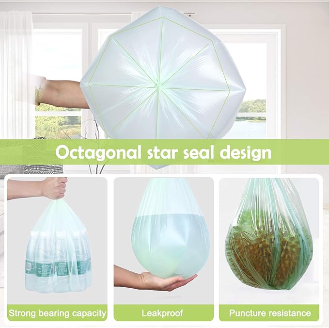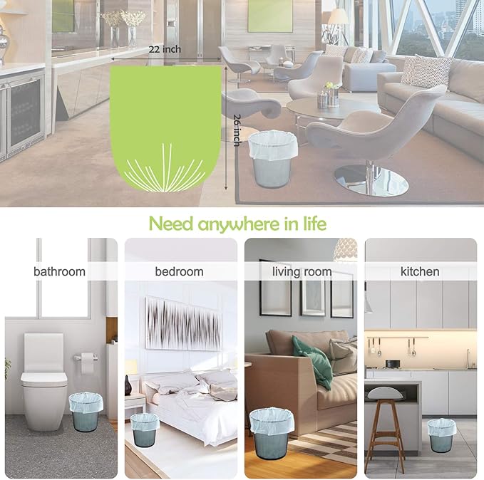 - 【Translucent & Easy to use】Our medium trash bags 8 gallon make you easy to view and identify the items of the bag to help separate. In addition, the breaking-point design make it easy to pull apart, you can dispense one bag at a time effortlessly.