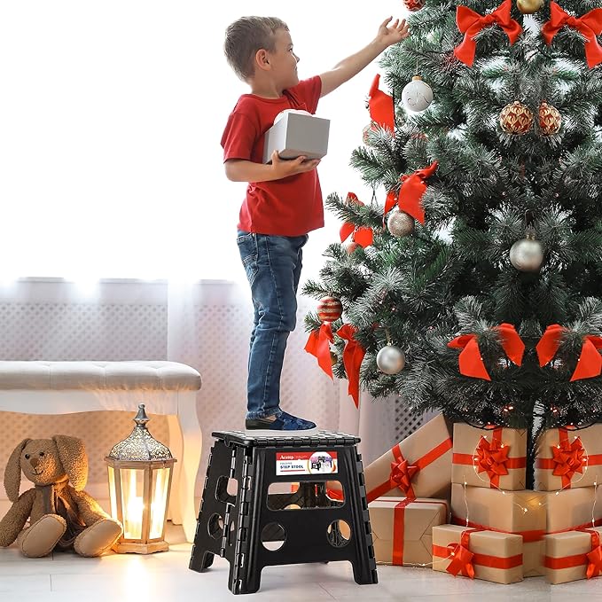 ACSTEP Folding Step Stool - 13 inch Height Premium Heavy Duty Foldable Stool for Adults, Kitchen Garden Bathroom Stepping Stool (1 Pack) Black