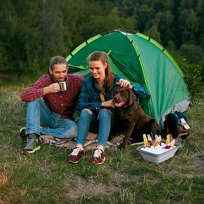 Collapsible Ice Bucket - 10-Liter Portable Outdoor Multi-Use Basin, Dish Tub, and Storage Basket for Camping and Tailgating by Wakeman (Gray)