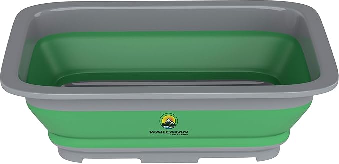 Collapsible Ice Bucket - 10-Liter Portable Outdoor Multi-Use Basin, Dish Tub, and Storage Basket for Camping and Tailgating by Wakeman (Green)