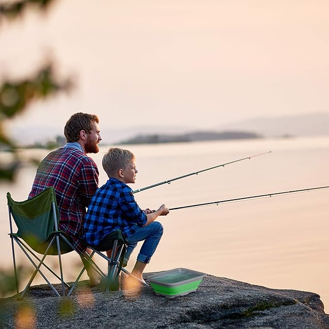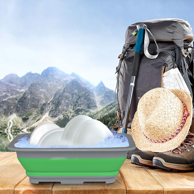 - PRODUCT DETAILS - Materials: Plastic and Plastic Rubber. Dimensions: (L) 14.75" x (W) 10.75" x (H) 5"; Collapsed: (H) 2". Maximum Capacity: 7.27-Liters. Color: Green.