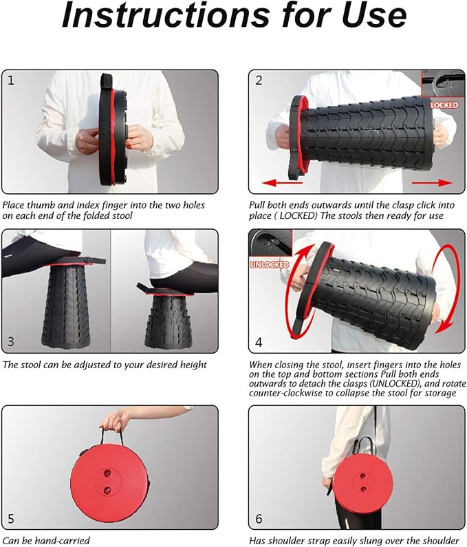 - ๐WIDE APPLICATION & SATISFACTION GUARANTEE: The portable extension stool is perfect for indoor and outdoor use. Such as kitchen, living room, bedroom, bathroom, office, camping, traveling, fishing, lounging,gardening, BBQ, picnic, hiking, standing in line and even on the subway! The beauty, functionality, durability, and portability of the extendable stool make it a great choice for friends and family on vacation or for any occasion.