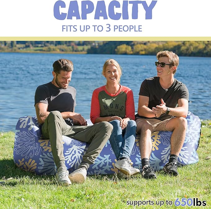 - Anti-Deflation Technology -- Love the idea of an inflatable couch but hate the idea of constantly needing to fill it up? Thanks to our anti-deflation technology, our air chair retains air twice as long as other Inflatable Loungers for an experience that is amazing! Our lounger is made with superb craftsmanship and high-quality Ripstop fabric that is lightweight, comfortable and strong enough to support 650lbs!