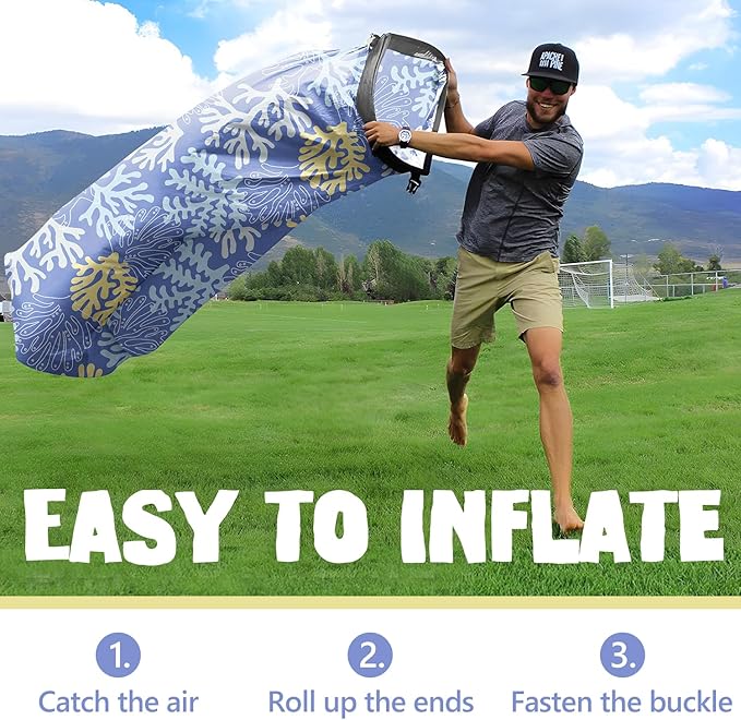 - Easy Inflation Design -- No pump required for AlphaBeing air lounger. Just a few scoops of air and this inflatable lounger is ready to hangout in. This is a must-have for any BBQ, beach, hike, concert, or camping trip. Folding to 12"x 8"x 4"and fitting in its own carrying bag with shoulder strap, this air sofa is ready to be taken anywhere with you.
