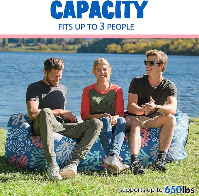 - Convenient Anytime, Anywhere: No pump required for our air lounger. Just a few scoops of air and this blow up couch is ready to hangout in. And it comes with opener and wind stake. Perfect for an afternoon of lounging, whether you're at the campsite, pre-game, BBQ or music festival.