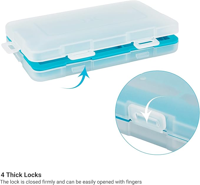 - 【4 Thickened locking system】:The battery box lock is closed firmly and can be easily opened with fingers and the "feet" on the bottom can prevent scratches to the bottom surface.