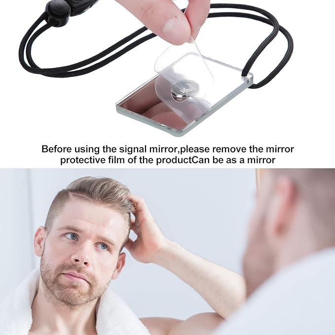 - Signal mirror protective design: designed with a protective film on the signal mirror surface, it can prevent the mirror from being scratched; And the signal mirror with a plastic box packaging can provide the mirror with a good protection, while it is convenient to store; Note: please remove the protective film on the mirror before use