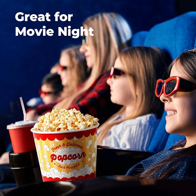 - Suitable for All Occasions - These are perfect disposable popcorn containers for movie night or decors for carnival theme parties. Fit Meal Prep's movie paper popcorn buckets sports a classic design in an attractive yellow and red color combination.