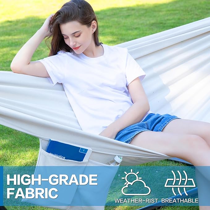 - ULTIMATE COMFORTABLE , The thicker and tighter woven cotton hammock spreads your weight in the center, while the fabric on both sides softly wraps you, and enjoys gravity-free relaxation