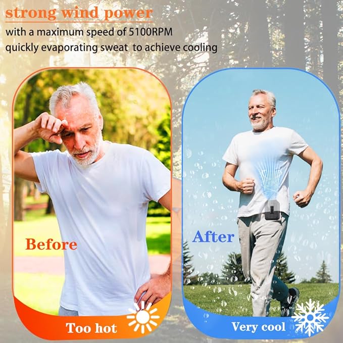- 2 in 1 ๐จ waist clip fan and neck hanging fan, whether you are working or traveling, it can easily cool you down and prevent heatstroke