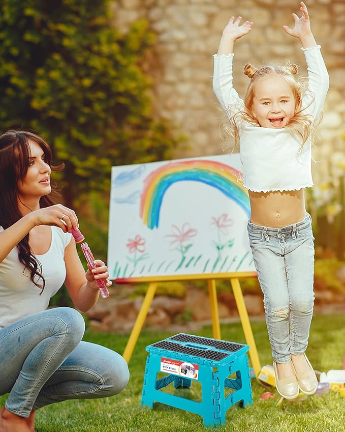 ACSTEP Folding Step Stool 9 inch Height Non-Slip Step Stool for Kid and Adult,Premium Heavy Duty Foldable Stool Kitchen Garden Bathroom Stepping Stool (Blue,1 Pack)