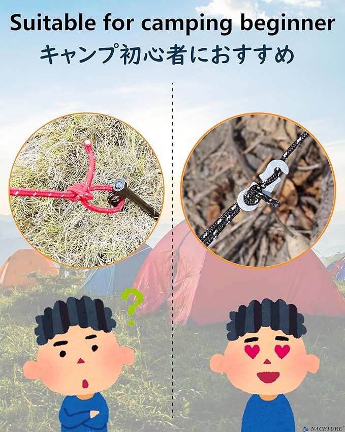- ๐๐๐๐ฎ๐ผ๐ฟ๐ ๐ผ๐ฟ๐ฒ, ๐๐๐๐ผ๐ฆ๐ฎ๐๐ฒ๐ฑ%โ FUNCTIONAL TENT ACCESSORIES - Donโt stress anymore when youโre out hiking or at the beach and you think your tent is going to be seen rolling away like a tumble weed, because we got you covered. Our hiking tent rope adjuster will help you to protect your tent securely from strong wind and rainstorm so you can finally have your peace of mind.