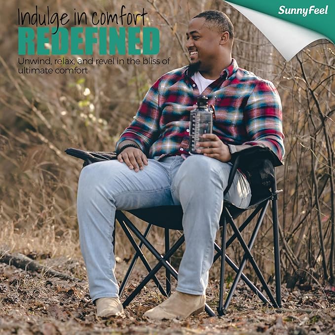 SUNNYFEEL Oversized Folding Camping Chair 500 LBS Heavy Duty Lawn Chairs for Adults Black Portable Folding with Armrest, Cup Holder, Pocket &Bag for Outdoor Camping/Beach/Travel/Picnic/Fishing