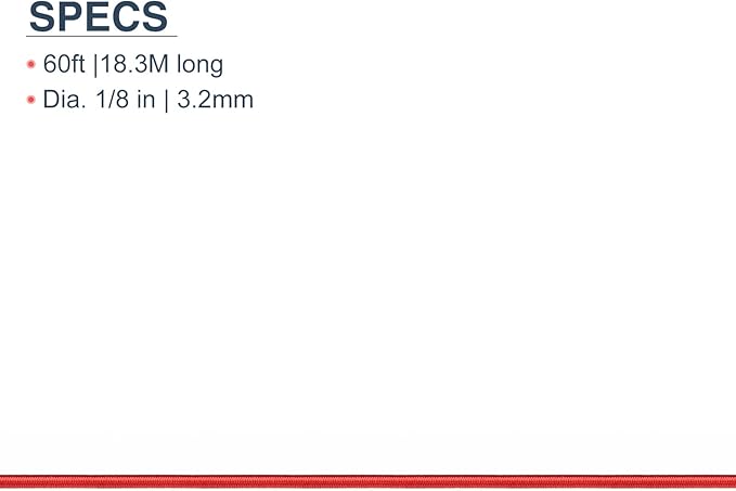 - SIZE INFO: 1/8 inch thick, one roll of 60ft long bungee cord. You are free to cut them and get extra left for further use.