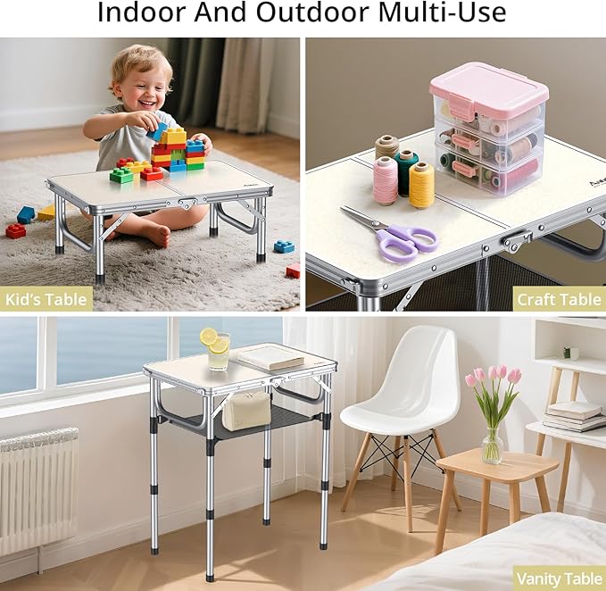 - Multifunctional Table for Various Occasions: This camping folding table is perfect for outdoor and indoor use. It can be used as BBQ grill side table, picnic table, card games table, serving table for dining, working and study table for adult and kids, fishing table