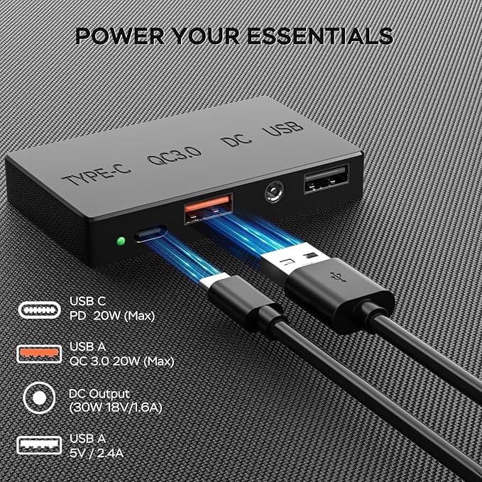 - 3 USB OUTPUTS: This solar panel features multiple USB output ports for versatile charging options, you can charge multiple devices at once: 1 USB port (5V/3A Max), 1 QC3.0 USB (5V/3A, 9V/2A, 12V/1.5A Max), and 1 USB-C (5V/3.3A, 9V/3.3A, 12V/3.3A, 20V/3.3A Max). This solar charger can quickly power your smartphones, laptops, tablets, power bank, speaker, iPads, GPS devices, USB fans, cameras, and other USB devices.