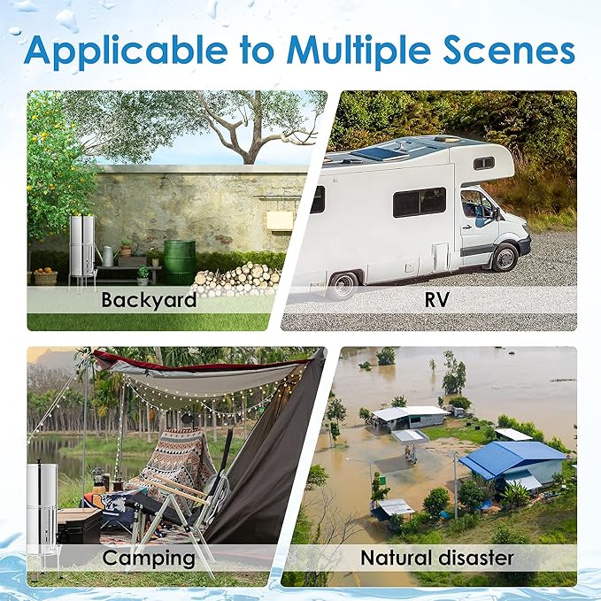 - Certification, large capacity: The Waterdrop gravity-fed water filter system features a large 2.25-gallon capacity, satisfying the demand for pure water both indoors and outdoors. This system has been certified to meet NSF/ANSI 372 standards.