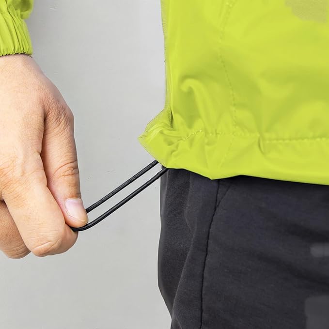 - ?�Unique Design?‘Lightweight lite rain jacket elastic cuffs prevent the rain drops to the cuffs; Adjustable drawcord hood to prevent yourself from being wet; The hem contains elastic rope for warmth and keep you dry. Suitable for casual wear, outdoor sports, outdoor work, traveling, cycling, hiking, climbing, fishing, camping, hunting.