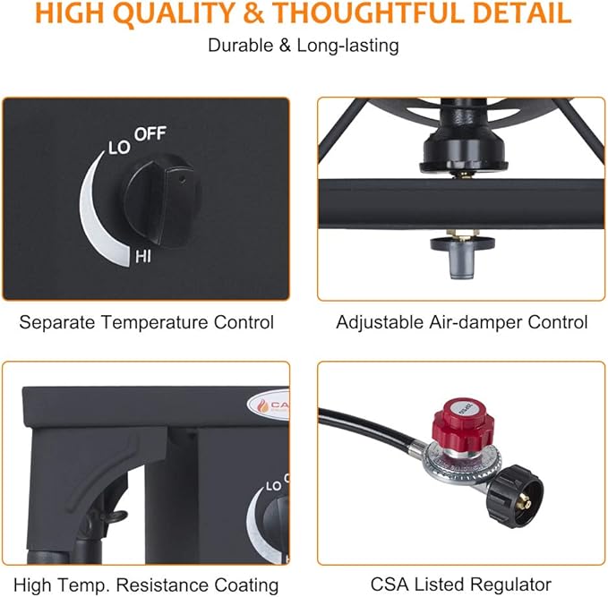 - High Heat Output: Outdoor burner can burn up to 130,000 BTU, which is suitable for more people to use and more different cooking