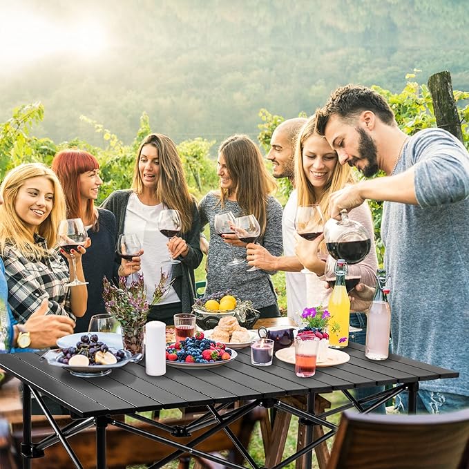 - 【Easy, Quick & Portable】Fordable design,no need to assemble, pull open the folding legs and spread out the roll-up table top, only takes 30 seconds, the outdoor table is ready to use. Every parts can be folded and packed into the storage bag, which has a carrying handles,can be handheld or carried on shoulders. Compact packing size : 50x24x16cm, weight 5.4kg, easy to carry to anywhere