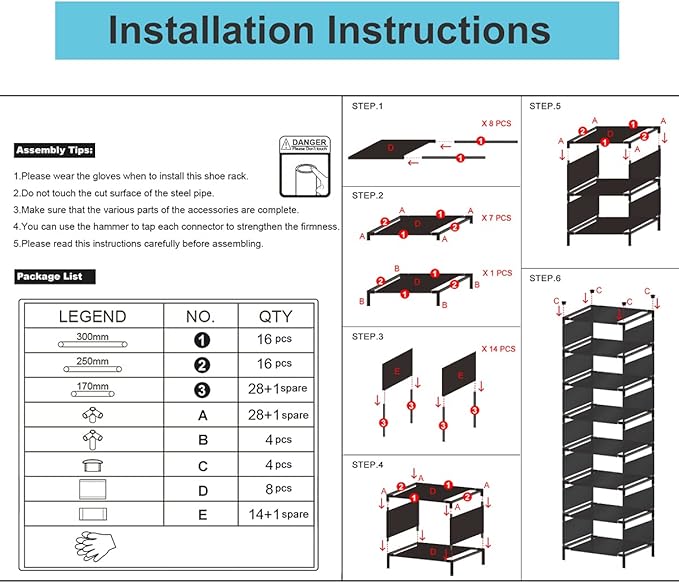 - Adjustable Shoe Rack: Our tall shoe rack can be removed one layer to fit high heels, boots, etc., or change it into low-level shoe rack for closet. Easy to install and disassemble, no tools are needed, just assemble the parts together by hand