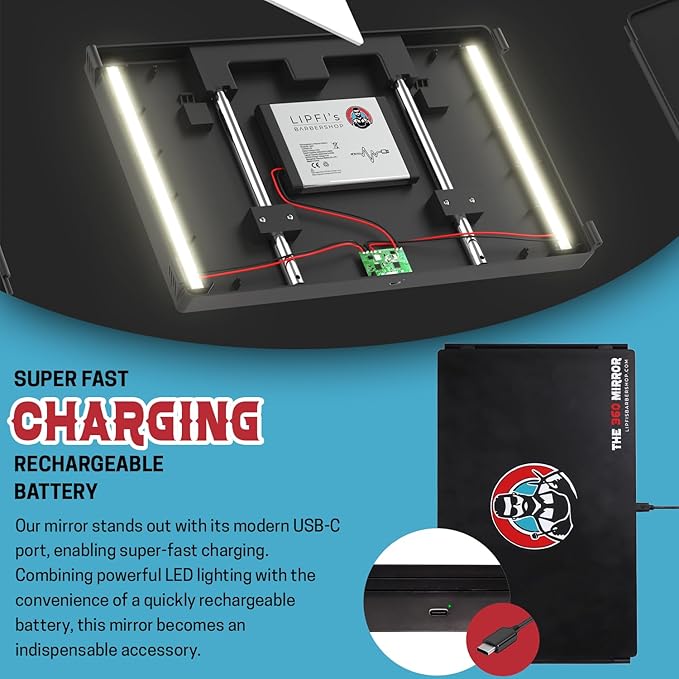 The 360 Mirror - 3 Way Mirror for Self Hair Cutting - Adjustable Trifold Barber Mirro to Cut Your Own Hair - Tri Fold Self Haircut System for Men - Three Sided Mirro for Haircuts (with LED)