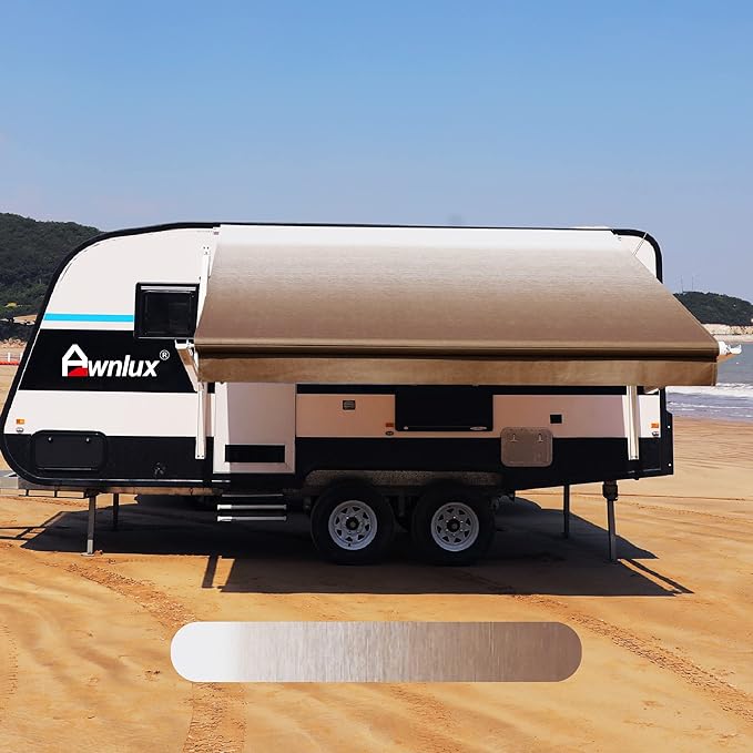 - EXPAND YOUR ACTIVITY SPACE - This RV awning fabric can provide you with an extra outdoor space to improve your overall living space, you can freely breathe fresh air and precious breeze in the hot outdoors instead of just waiting inside the RV, which is very convenient for you to use.Free Accessories and awning installation tools 3 x polycord for awning roller tube and rail, 1 x pull strap , 1x press plate 3x S hooks)