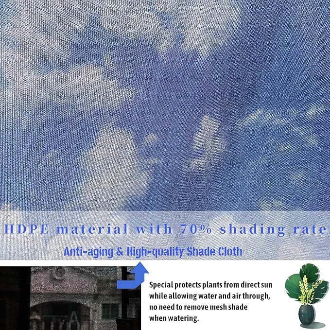 - ?�Durability Material??The UCIN shade net is made of UV resistant high-density polyethylene shade fabric,which is durable, breathable and lightweight. This sunblock shade cloth is perfect for plants,flowers,vegetables and fruits. Applicable for livestock housing,greenhouses, and outdoor parking. Special weaving process with service life lasts several seasons.