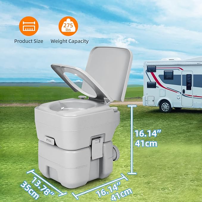- LARGE CAPACITY & REPEATED USE: The portable travel toilet has a 3.2 gallon (12L) freshwater holding tank and 5.3 gallon (20L) waste water holding tank, which ensures the portable toilet for camping can be used for multiple times before it has to be cleaned, saving your time