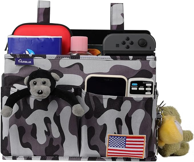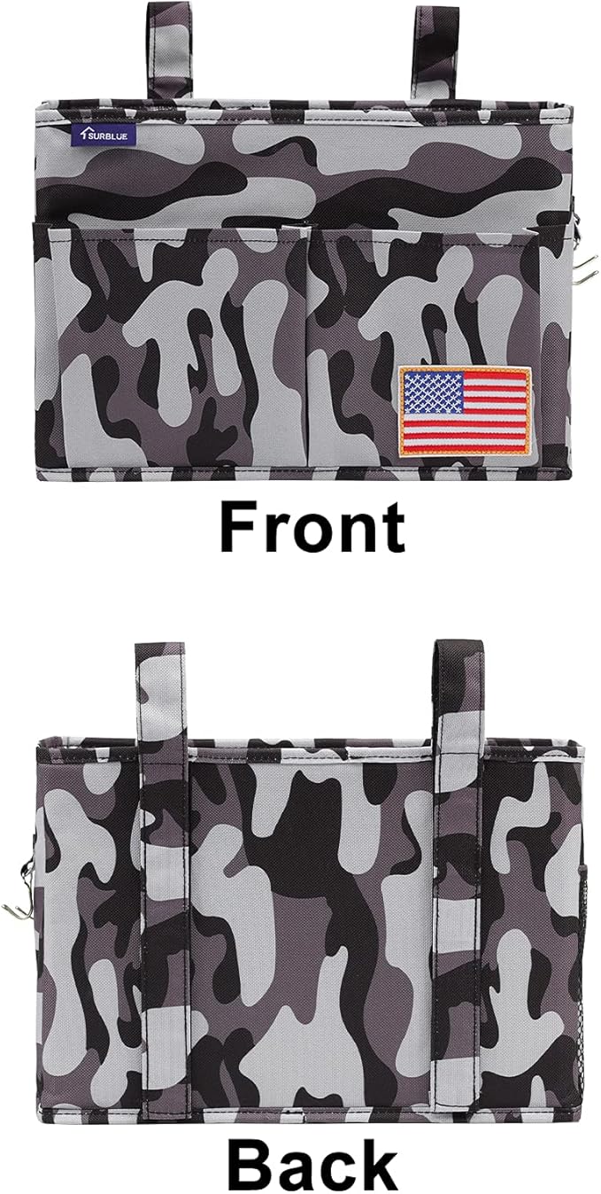 Surblue Bedside Caddy Hanging Bed Organizer Storage Bag Pocket for Bunk and Hospital Beds, College Dorm Rooms Baby Bed Rails, Wheelchair Side Bag, Camp Chiars, 4 Pockets and 2 Hooks (Small City)