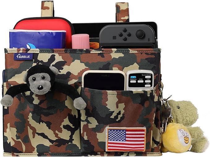 Surblue Bedside Caddy Hanging Organizer Storage Bag Pocket for Bunk, Hospital Beds, College Dorm Rooms, Baby Bed Rails, Wheelchair Side Bag, Camp Chairs, 4 Pockets and 2 Hooks (Small Jungle)